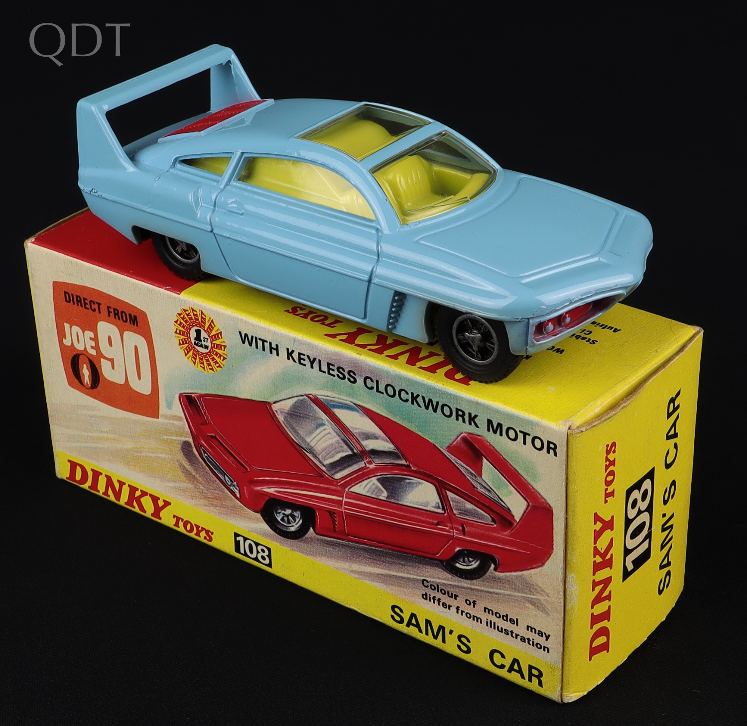 Inspired by Gerry Anderson’s Joe 90 t.v. series, this Sam’s Car is very near mint. This is the pale powder blue version with lemon interior, red engine cover and cast wheels.