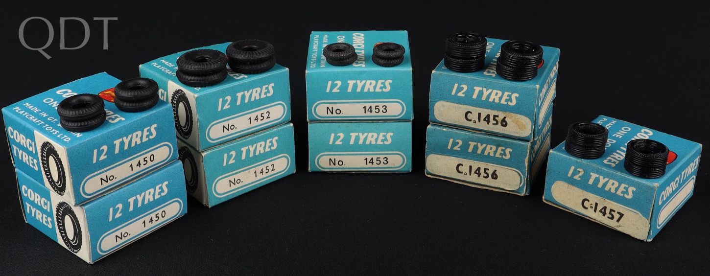 9 x full boxes of Corgi Tyres (various sizes). Mint/boxed. QDT starting bid £95. Please note that QDT apply 12.5% buyer's commission.