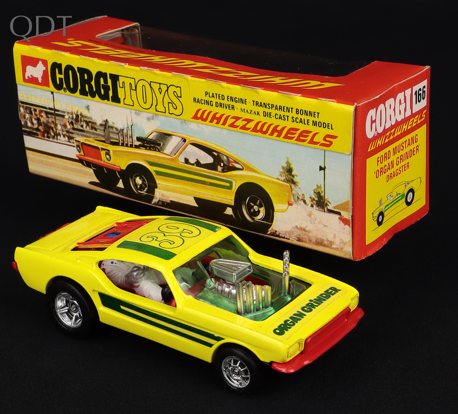 Ford Mustang Organ Grinder Dragster by Corgi Toys, No. 166. Very near mint/boxed. Nice box! From The Elmer Collection.