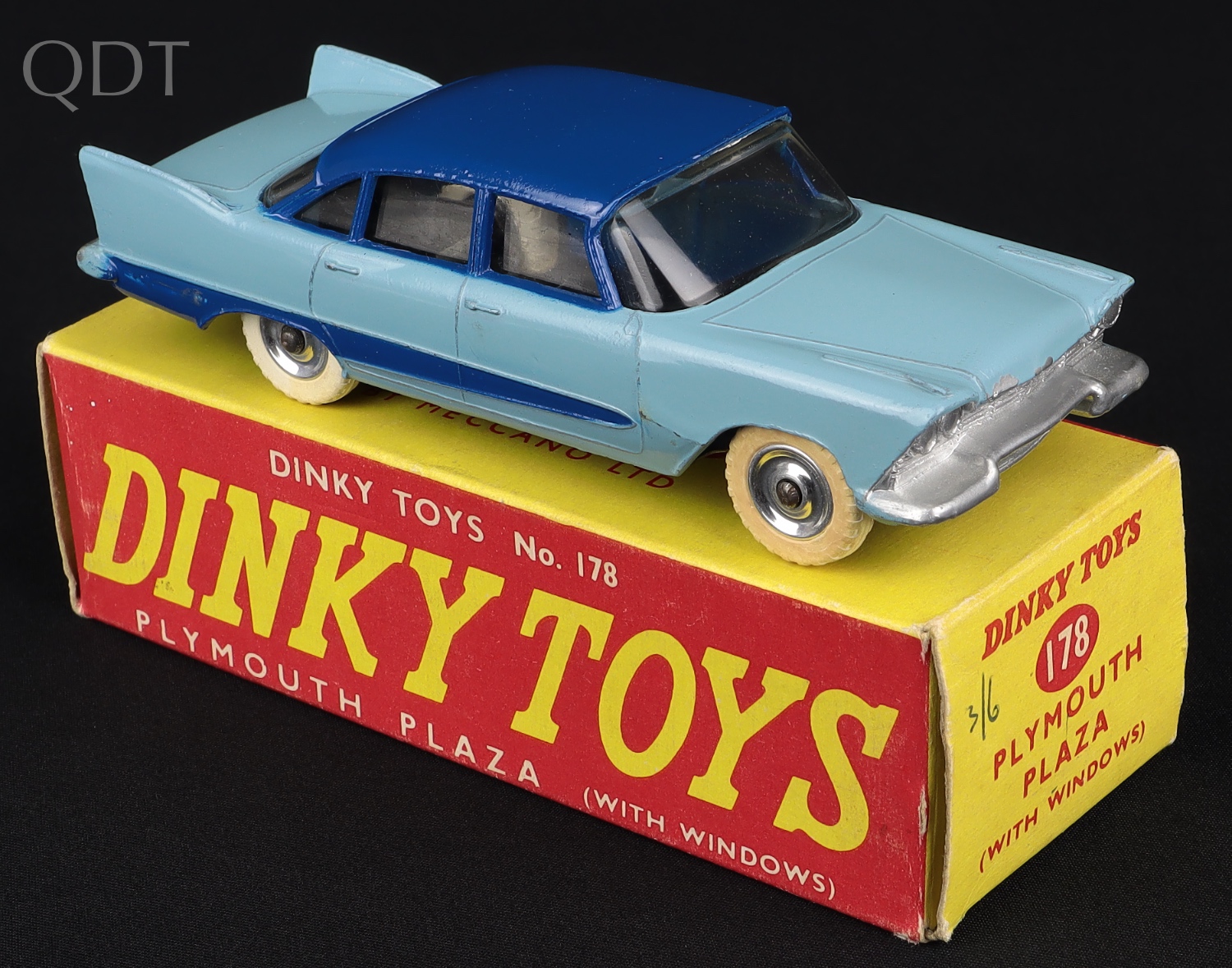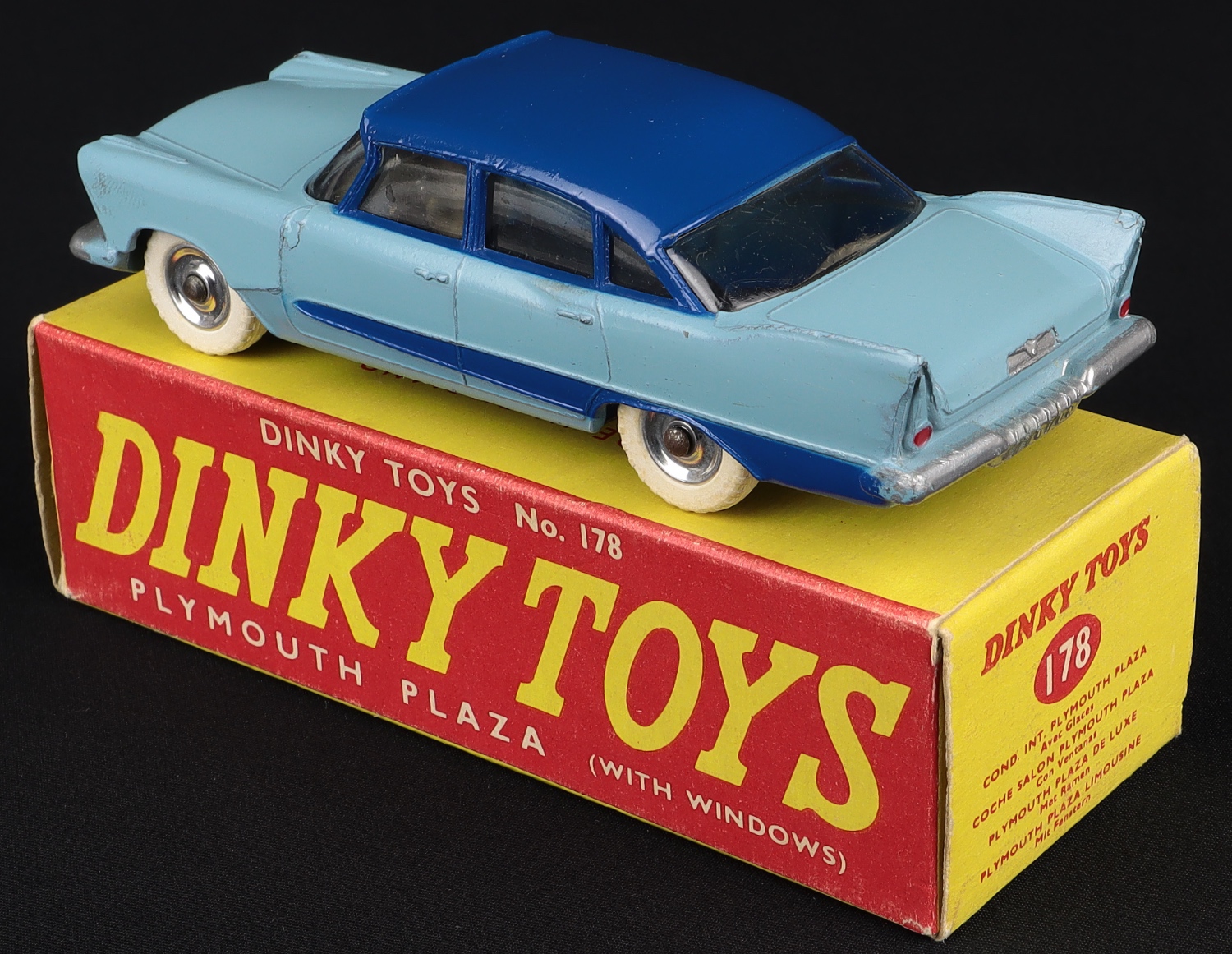 Plymouth Plaza by Dinky Toys, No. 178. Two tone blue version. Very near mint/boxed (harder find in the plain red and yellow box). From The Rickman Collection.