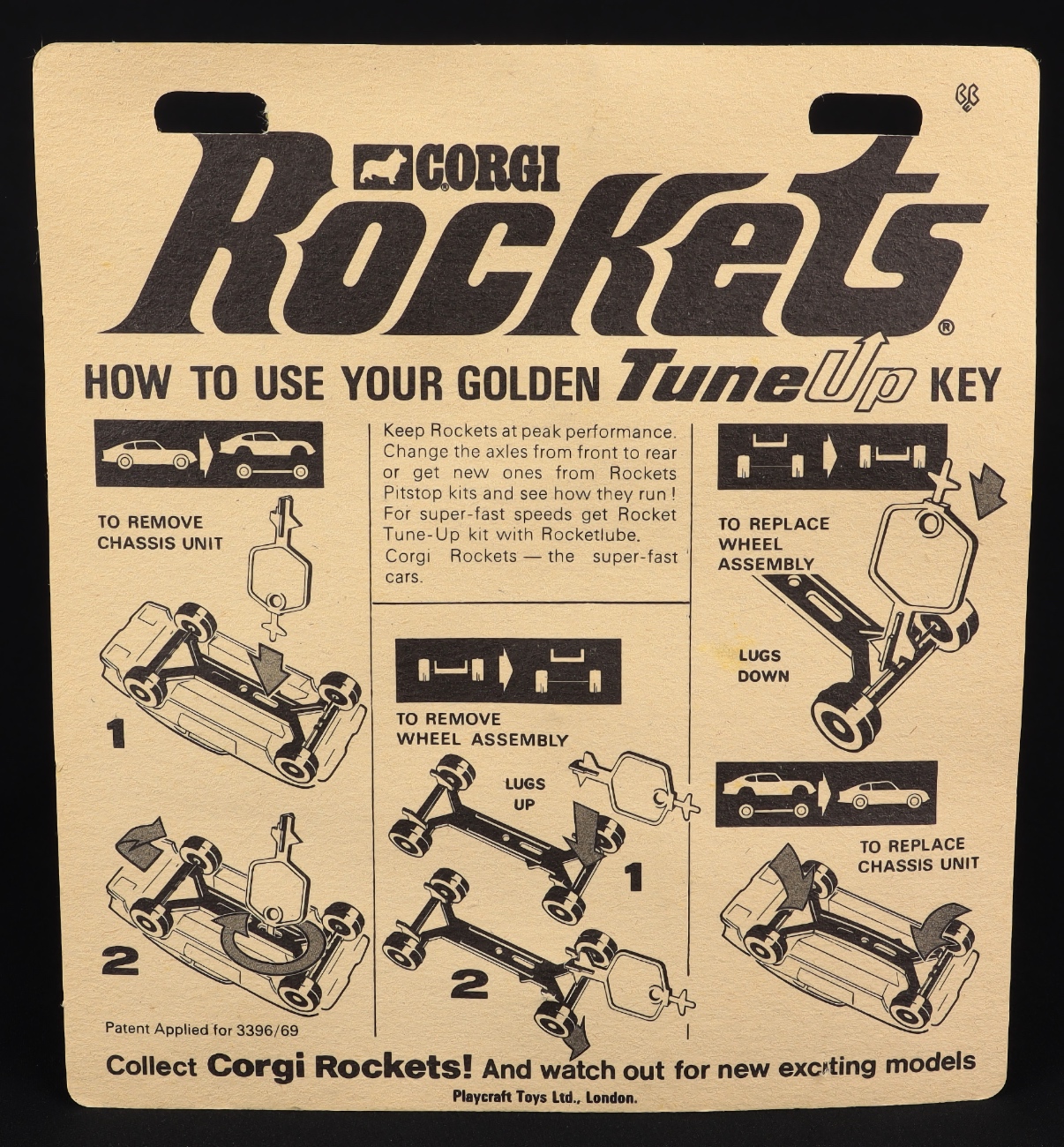 This Morgan Plus 8 model is in virtually mint condition still held beneath the clear blister, along with the Golden Tune-Up Key. Most eye-catching metallic Candy Red finish. Note the minor tarnishing to the front bumper.