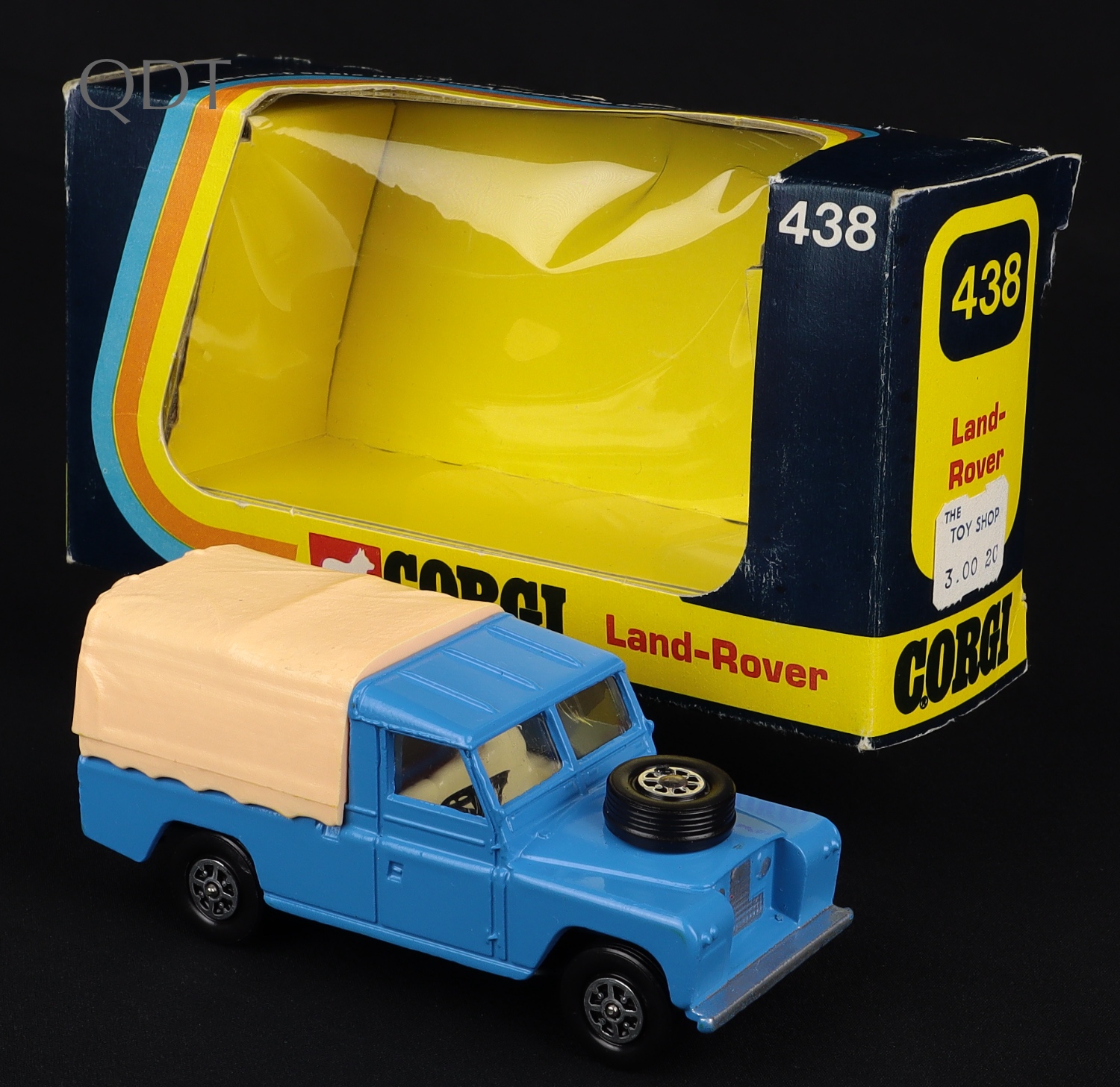 Land-Rover by Corgi Toys, No. 438. In DEEP SKY BLUE, with CREAM interior, whizzwheels & deep cream canopy. Scarce! Very, very near mint/boxed. From The Gower Collection. Starting bid £150. Please note that QDT apply 12.5% buyer's commission.