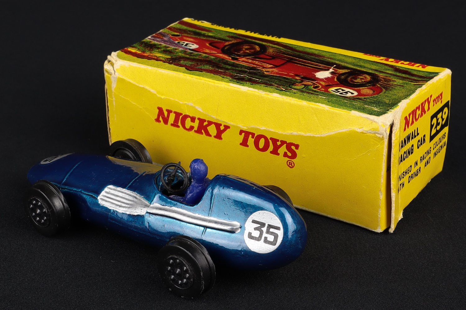 Vanwall Racing Car by Nicky Dinky Toys, No. 239. Vivid metallic blue version. Very, very near mint/boxed. Scarce. From The Phenomenal Collection. Starting bid £750. Please note that QDT apply 12.5% buyer's commission.