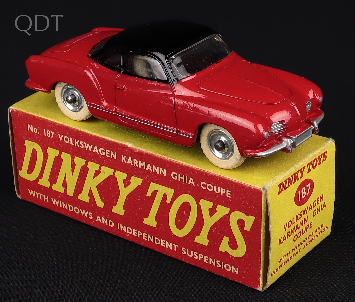 Volkswagen Karmann Ghia Coupe by Dinky Toys, No. 187. Red & black issue. Very near mint/boxed. From The Rickman Collection.