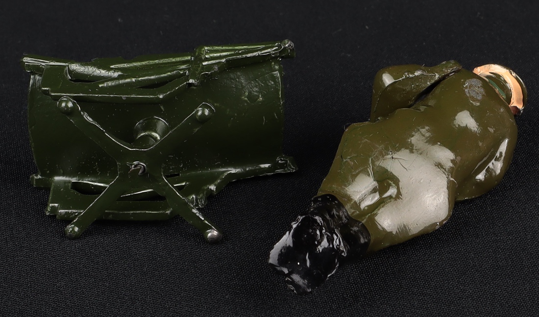 An intriguing and scarce item in typical high quality finish with  attention to detail. So the chair (finished in deep military green) can be made to swivel and the Observer (in Service Dress) can raise and lower his binoculars.