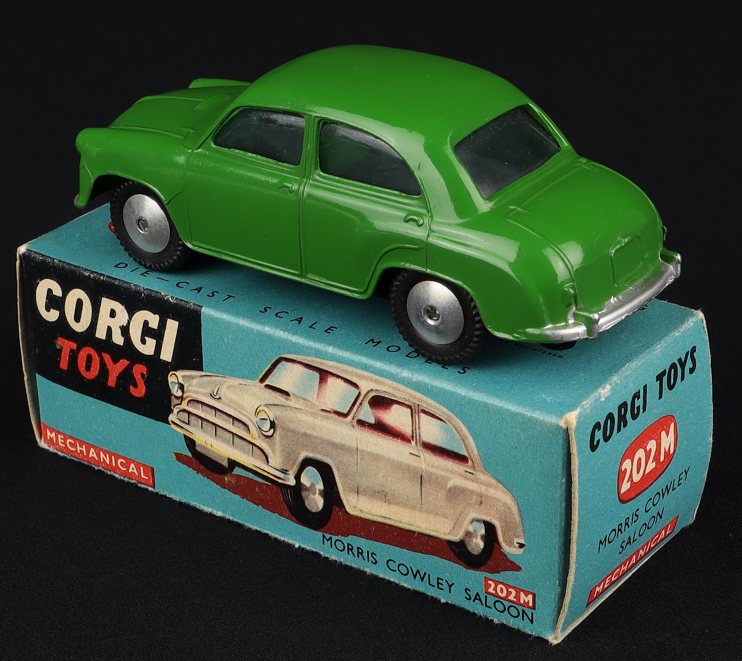 Morris Cowley Saloon by Corgi Toys, No. 202M. Rich, mid-green issue. Very, very near mint/boxed. From The Heart of England Collection.