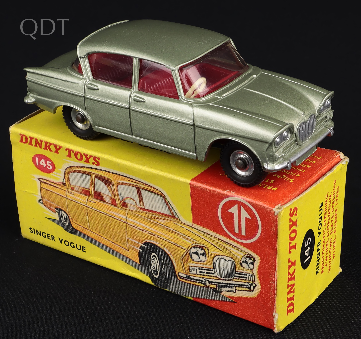 Singer Vogue by Dinky Toys, No. 145. Very near mint/boxed. Pale metallic silver-green issue & shiny baseplate. From The Rickman Collection.