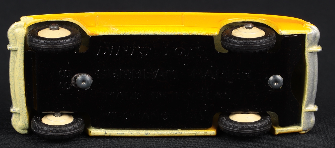 This classic Dinky car has a fresh and lustrous orange-yellow and cream paint finish with beige wheels:
