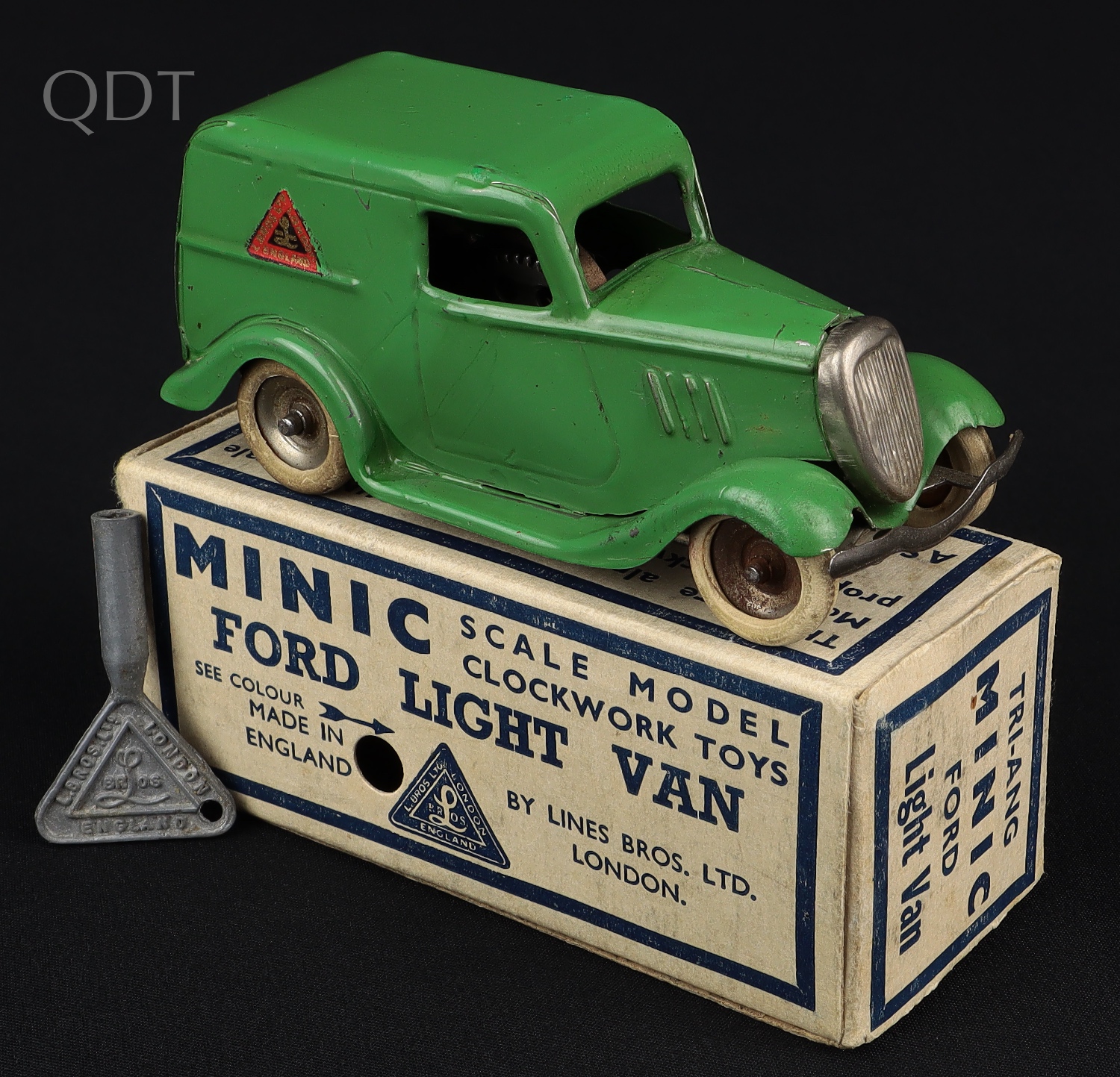 Ford Light Van by Minic Models, No. 2M. Scarce PRE-WAR version. Working clockwork motor with key. Near mint/boxed. From The Denis Tyler Collection. Starting bid £100. Please note that QDT apply 12.5% buyer's commission.