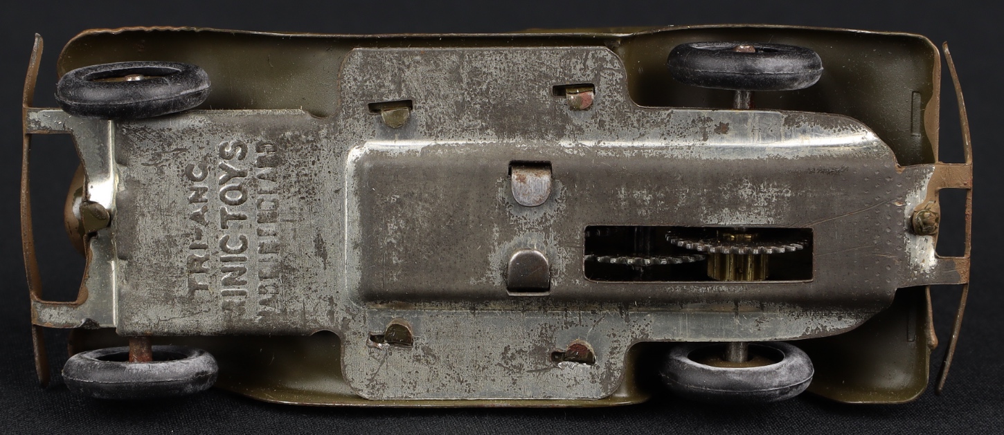 Ford Saloon by Minic Models, No. 1M. Working clockwork motor. Very near mint/boxed, with original MInic Key. Rare in camouflage colours. Post-war version. From The Denis Tyler Collection. Starting bid £100. Please note that QDT apply 12.5% buyer's commission.