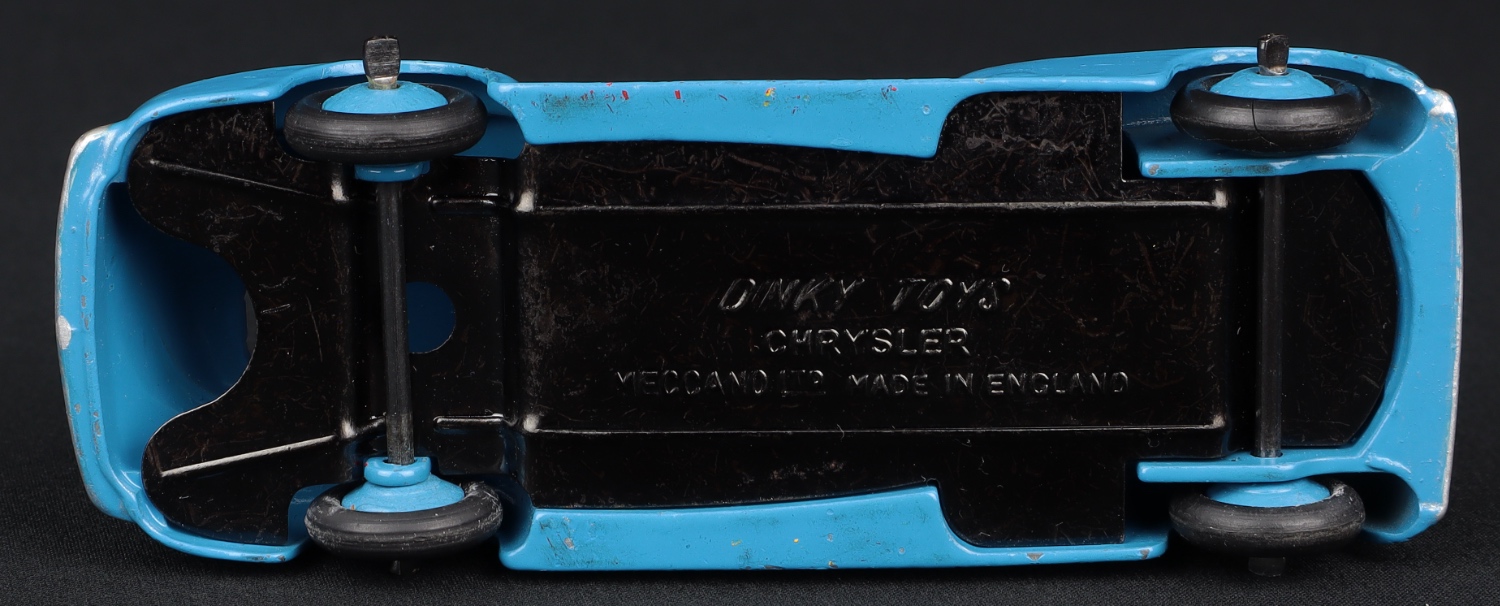 Chrysler Royal Sedan by Dinky Toys, No. 39E. Near mint plus/in original Trade Box with dividers. Bright mid-blue with blue wheels. Made for one year only (1950). From The esteemed Spa-Francorchamps Collection. QDT starting bid £200. Please note that QDT apply 12.5% buyer's commission.