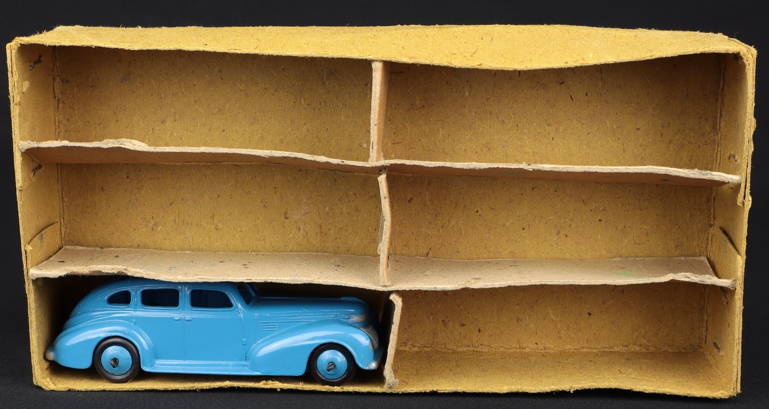 This original Dinky Trade Box contains a rare late post war Dinky car, not often seen in this distinctive bright mid-blue finish with matching blue wheels.