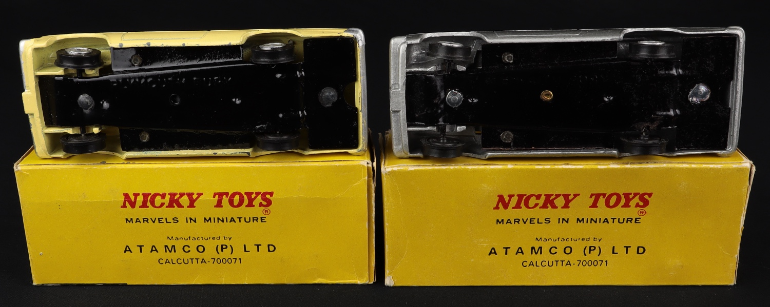2 x Plymouth Fury Sports by Nicky Dinky Toys, No. 137. Very near mint -very, very near mint/boxed. Lemon-cream & silver versions. From The Phenomenal Collection.