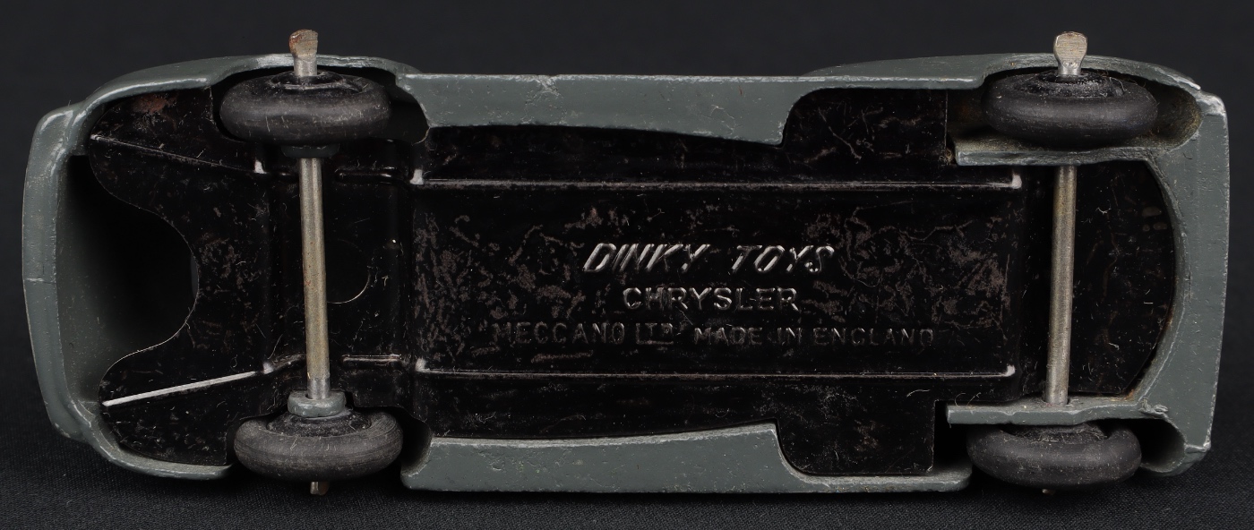 Chrysler Royal Sedan by Dinky Toys, No. 39E. Very near mint/never individually boxed. Scarce issue in deep grey. From a single owner from new collection. Starting bid £100. Please note that QDT apply 12.5% buyer's commission.
