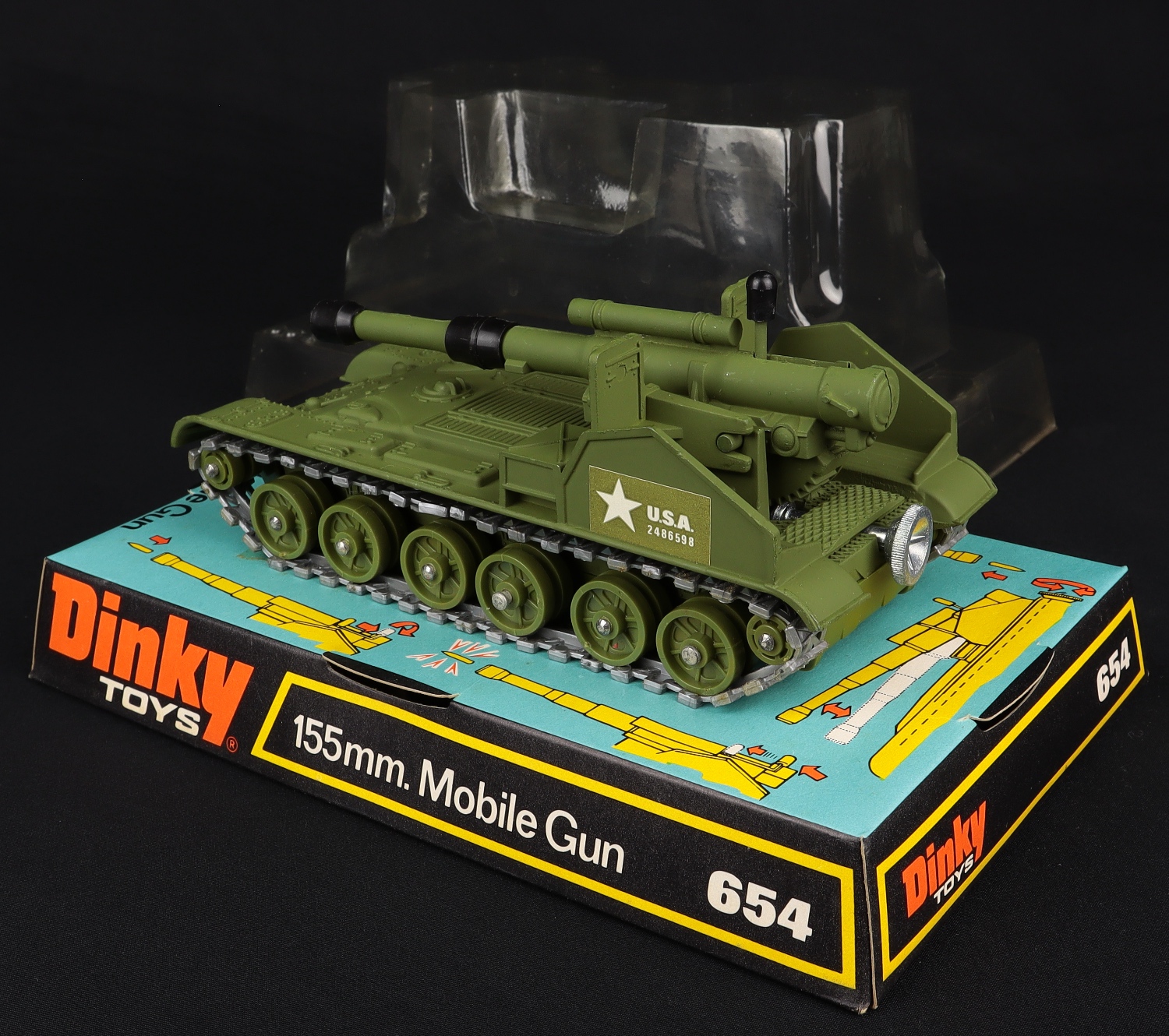 155mm Mobile Gun by Dinky Toys, No. 654. Very, very near mint/boxed (bubble pack). From The Reference Collection.