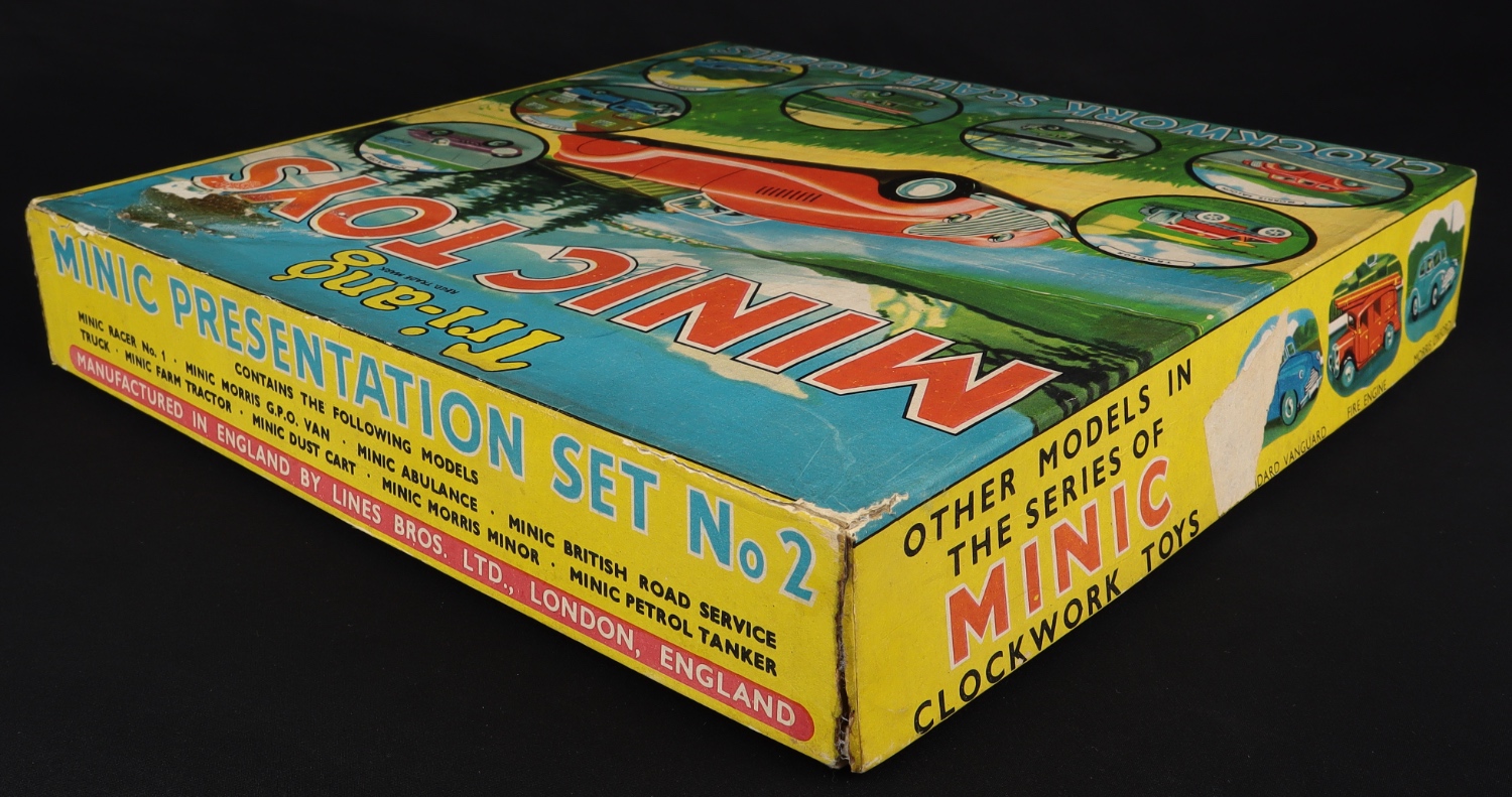 8 Model Set by Tri-ang Minic, Presentation Set No. 2. Near mint plus - very, very near mint/boxed. With original Minic Keys. So rare to come to the market-place! From The Heart of England Collection. Starting bid £500. Please note that QDT apply 12.5% buyer's commission.