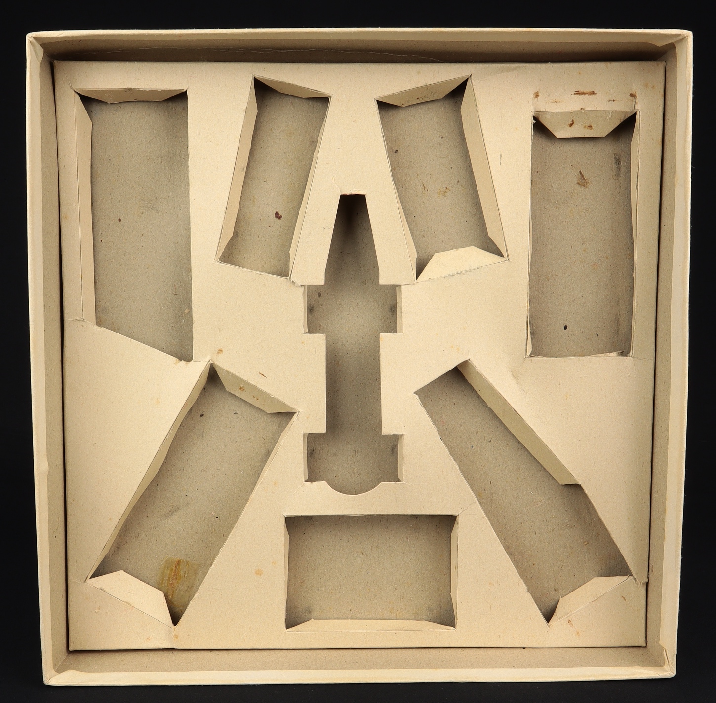 Beautifully illustrated colourful lift-off lid card box adds to the appeal of this set. Eye-catching and the colours are still so vibrant! Light ‘foxing’ on one side. Note the blemish to the card on the top right hand corner with a little surface loss too. Remains of the old tape at one side which kept the lid closed. Two lid seam repairs. Tape has been removed at the other side at some time with resultant surface loss. Minor wear besides.