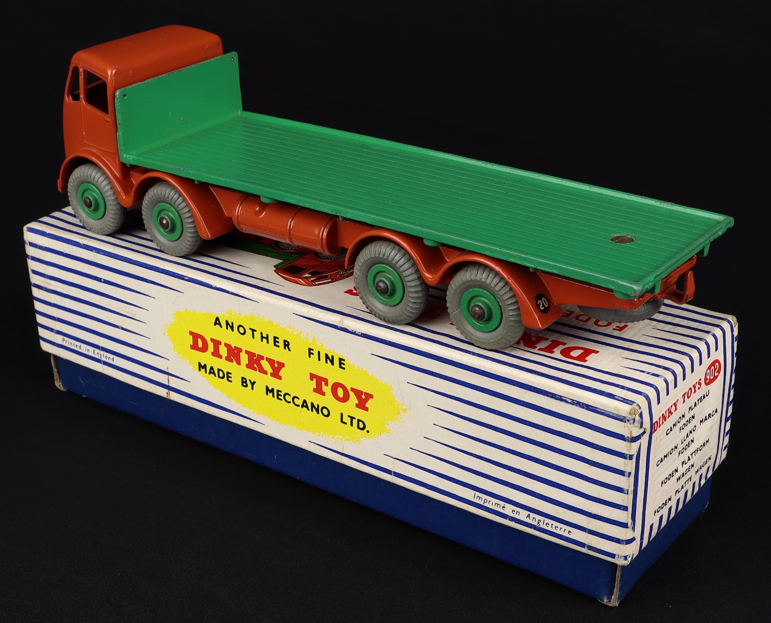 Foden Flat Truck by Dinky Toys, No. 902. Near mint plus/boxed. Burnt orange & green issue. Scarce. From The Rickman Collection.