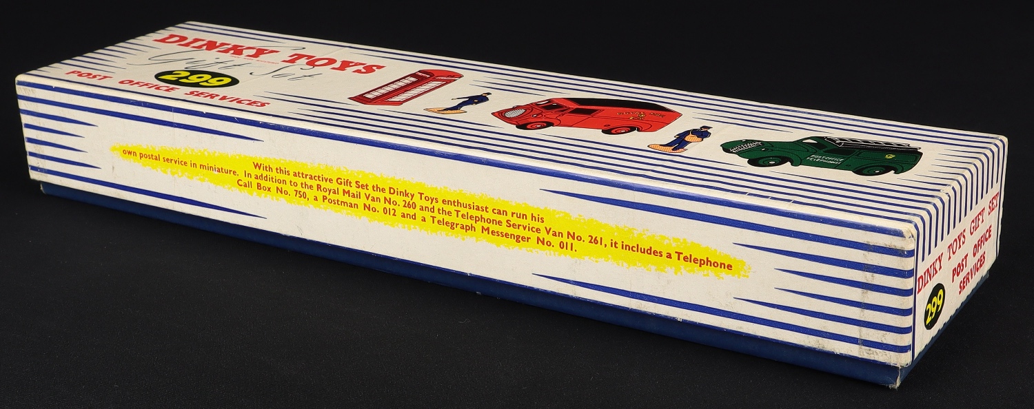 Post Office Services by Dinky Toys, Gift Set No. 299 . Very near mint/boxed with inner. Scarce. From The Rickman Collection. Starting bid £250. Please note that QDT apply 12.5% buyer's commission.