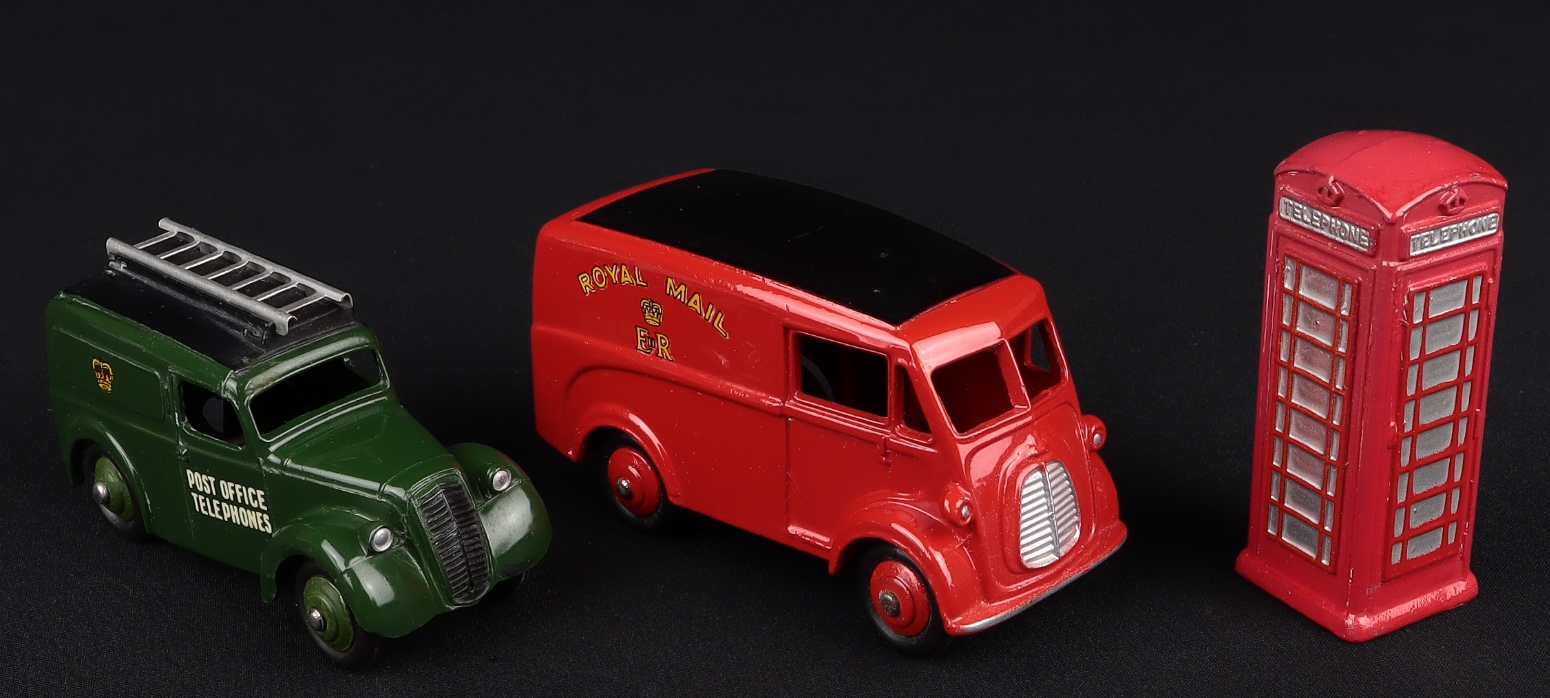 2) 261 Post Office Telephones Van is in close to mint condition. Lettering and crest are complete on both sides. Minor dulling to the baseplate in one small area. Well-shaped original tyres. Occasional tiny mark. Stray smudge of black paint low down head on.