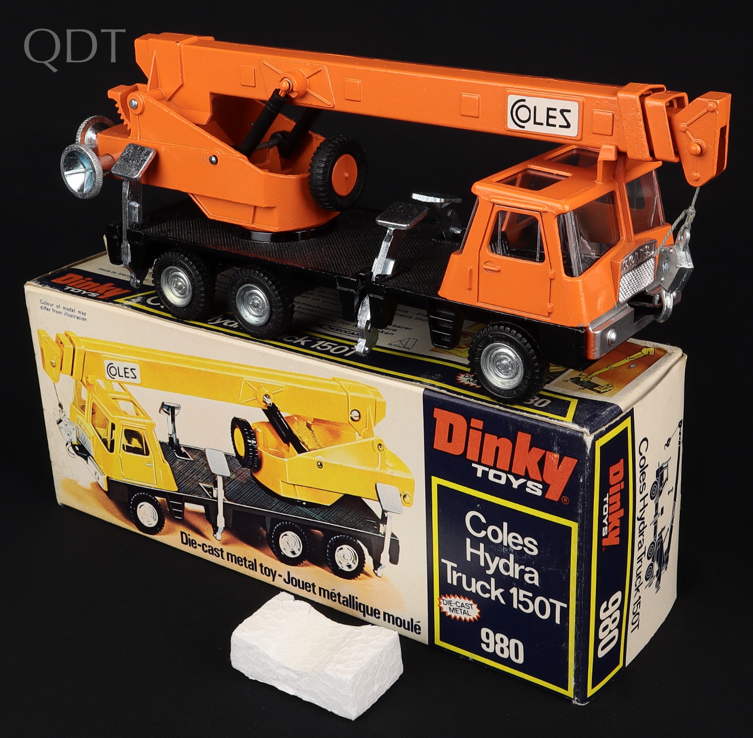 Coles Hydra Truck by Dinky Toys, No. 980. Very near mint/boxed. With polystyrene packing wedge, packing sleeve. Box printed instructions. Scarce 2nd issue in ORANGE from The Reference Collection.