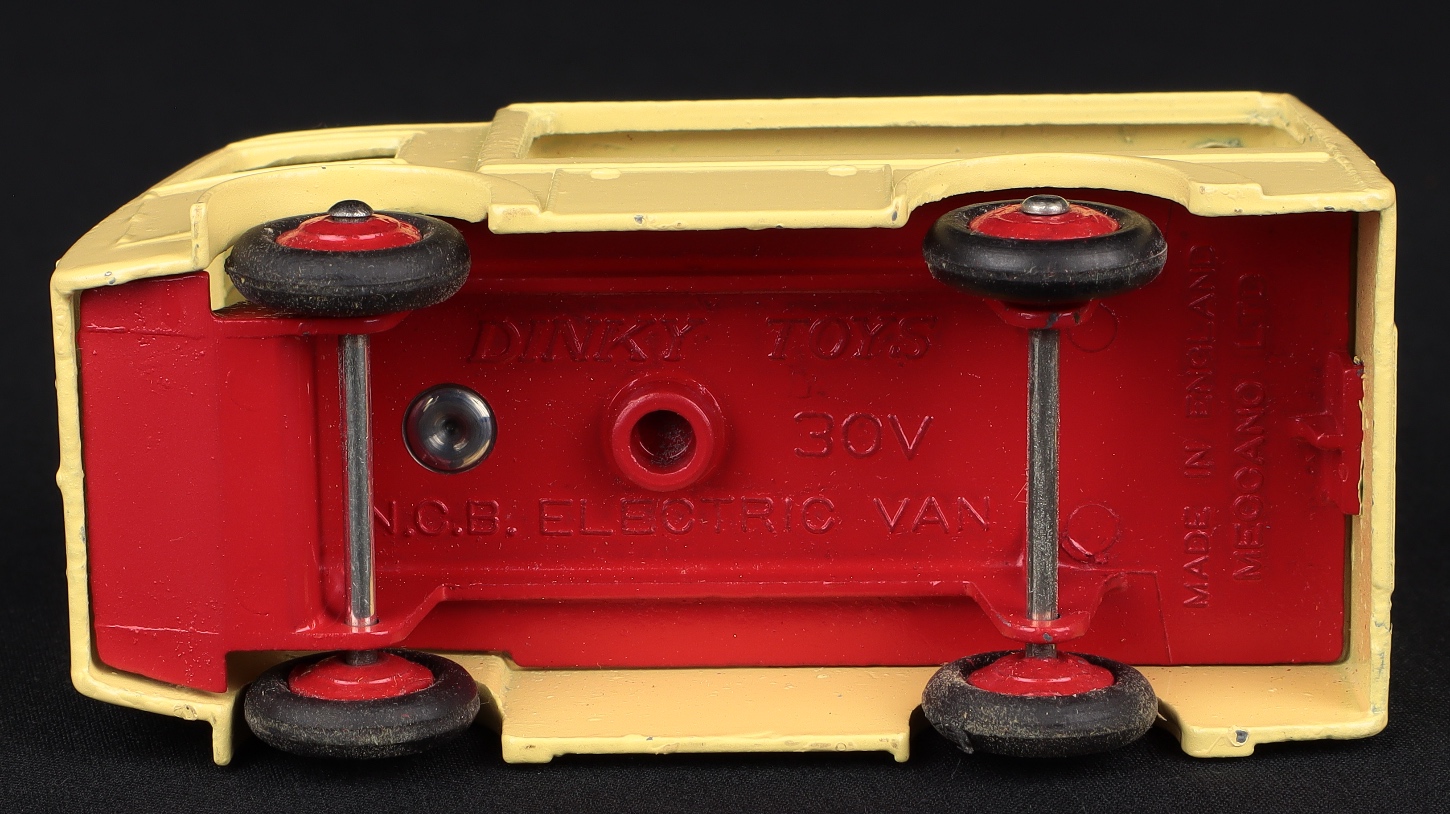 Electric Dairy Van 'Express Dairy' by Dinky Toys, NO 30V 490 . Very, very near mint/boxed. Cream with red flatbed and wheels. Super-fresh box with Trade Outer Carton. From The Reference Collection.