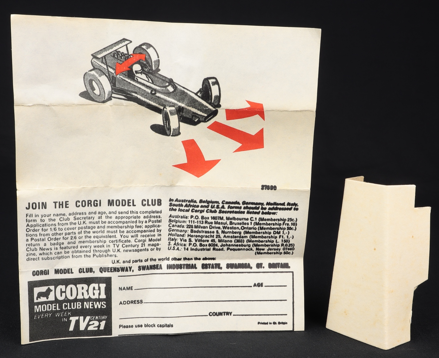Cooper-Maserati Formula 1 Car by Corgi Toys, No. 159. Very, very near mint boxed (early). With Leaflet & card packing. From The Rickman Collection.
