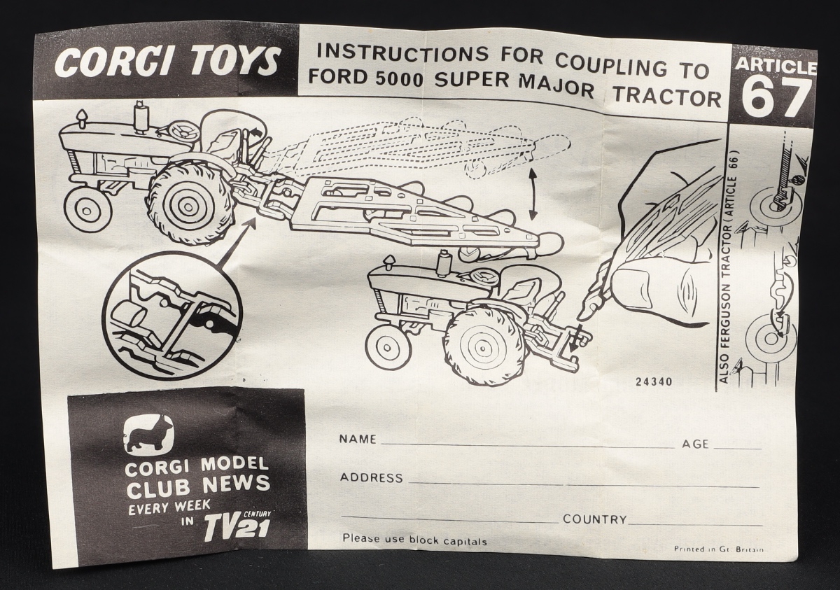 Ford 5000 Super Major Tractor by Corgi Toys, No.67. Mint/boxed. With Instructions & packing card. Old shop stock quality from The Elmer Collection.