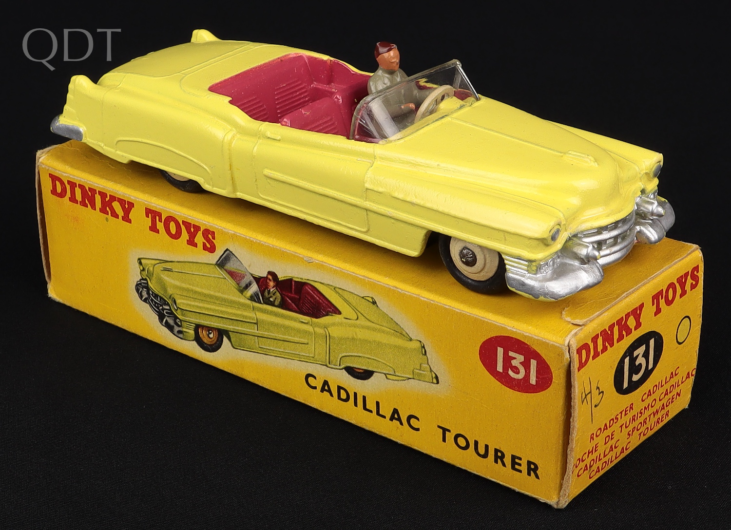 Cadillac Tourer by Dinky Toys, No. 131. Yellow version. Early issue with cream ridged wheels. Very near mint/boxed. From The Reference Collection.