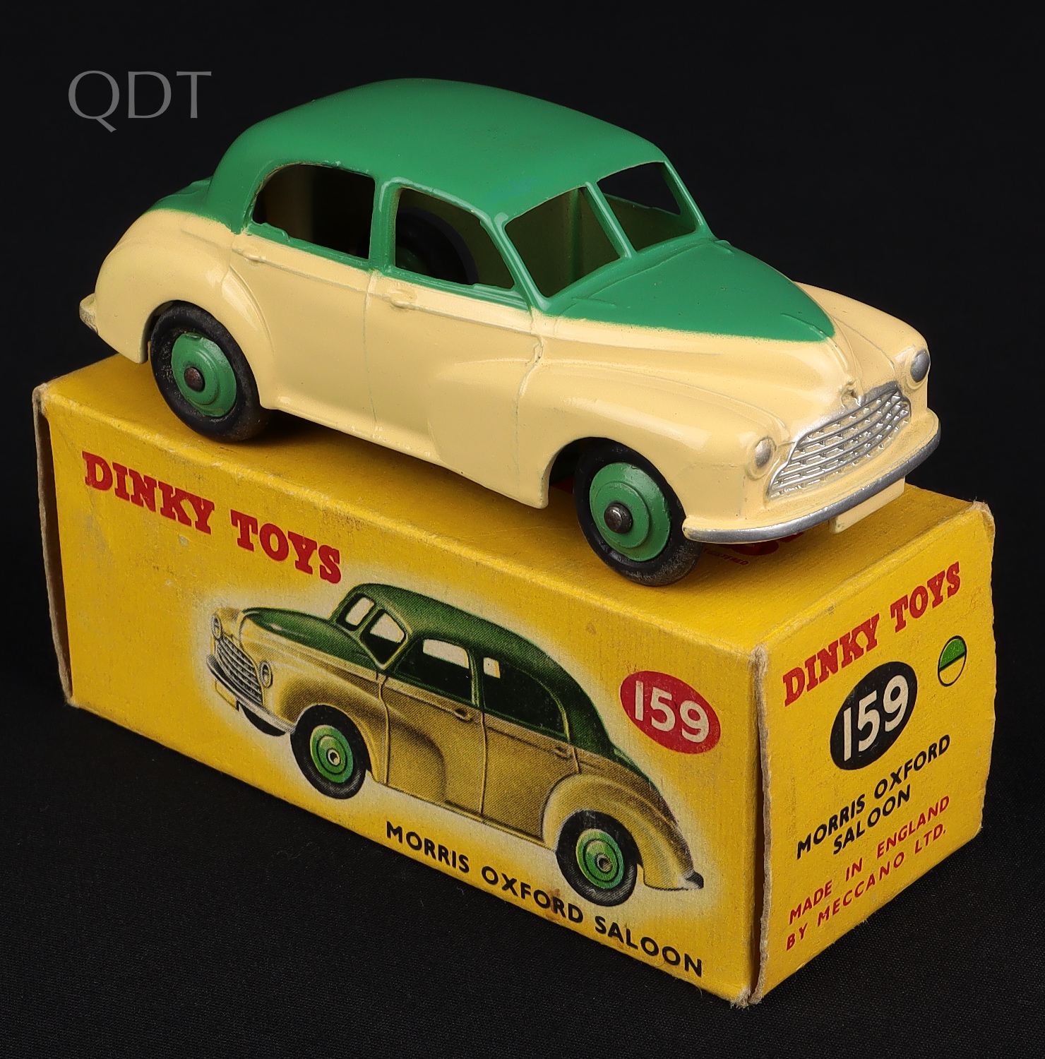 Morris Oxford Saloon by Dinky Toys, No. 159. Very, very near mint/boxed. Green & cream issue. Scarce. From The Reference Collection.