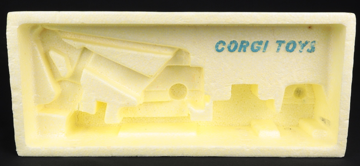 Box base is made of polystyrene and is very fresh and bright with light blue Corgi Toys lettering. Close to shop-fresh.