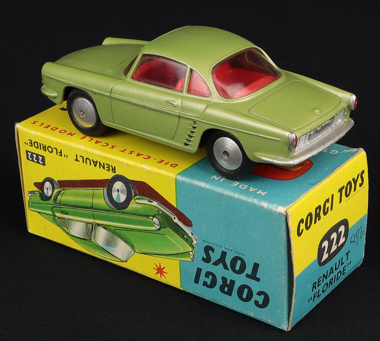 Renault Floride by Corgi Toys, No.222. Metallic green. Flat spun wheels issue. Very, very near mint/boxed. From The Elmer Collection.