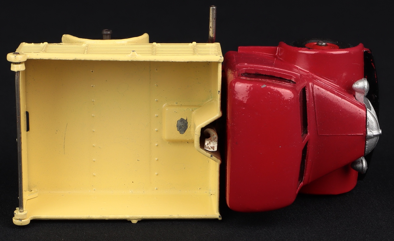 Bedford Tipper Truck by Dinky Toys, No. 410. With Dinky Trade Box. Scarce late issue in CARMINE RED & cream with red plastic wheels. Near mint plus/boxed. From The Berlin Collection.