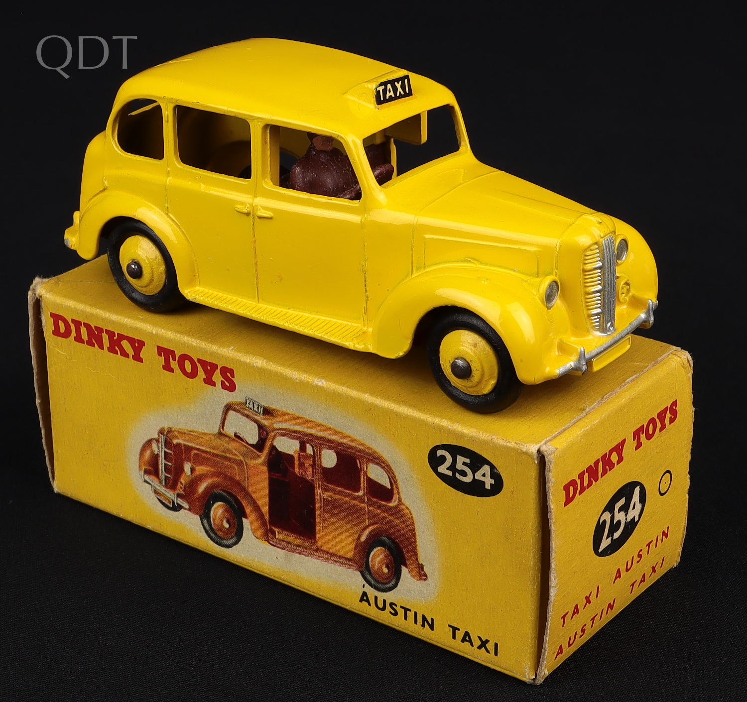 Austin Taxi by Dinky Toys, No. 254. Yellow with a BROWN chassis/interior. Scarce! Very near mint/boxed. From The Reference Collection. Starting bid £175. Please note that QDT apply 12.5% buyer's commission.