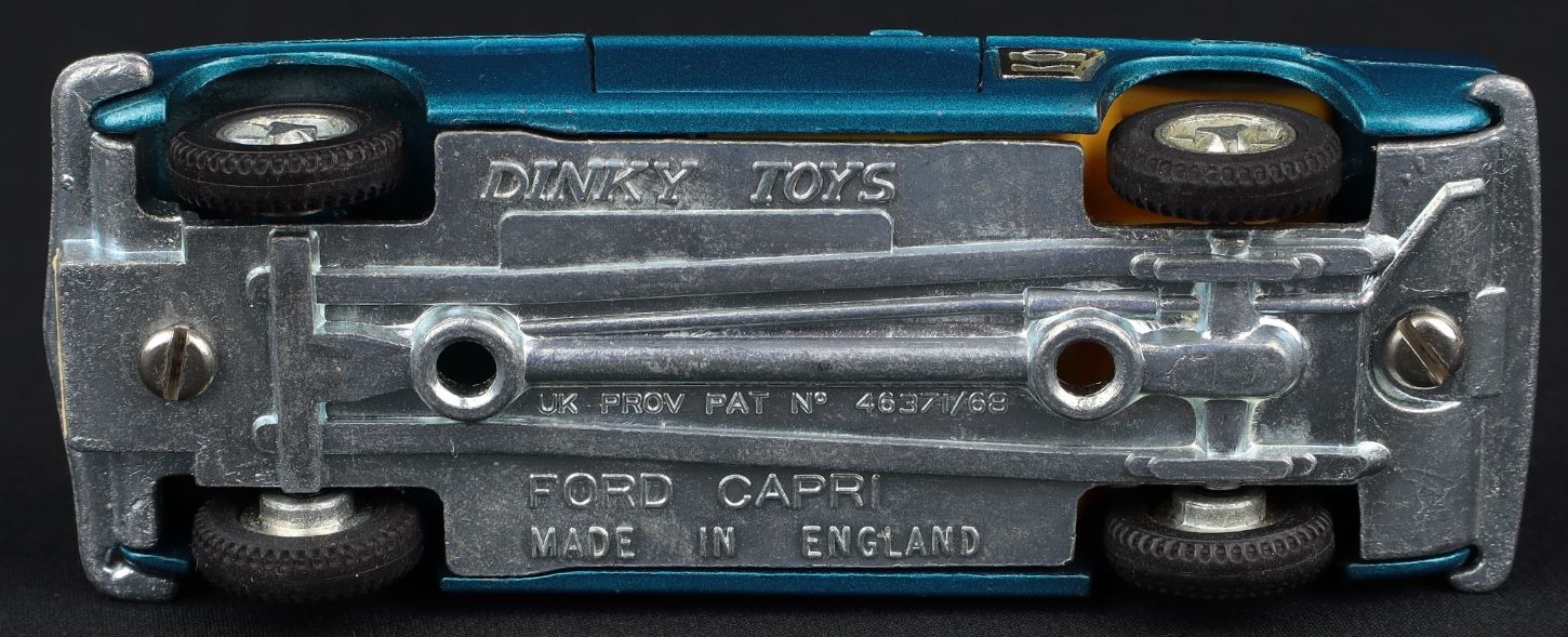 Ford Capri by Dinky Toys, No. 165. Very near mint/boxed. Scarce find in deep metallic turquoise, with cast wheels. From The Reference Collection.