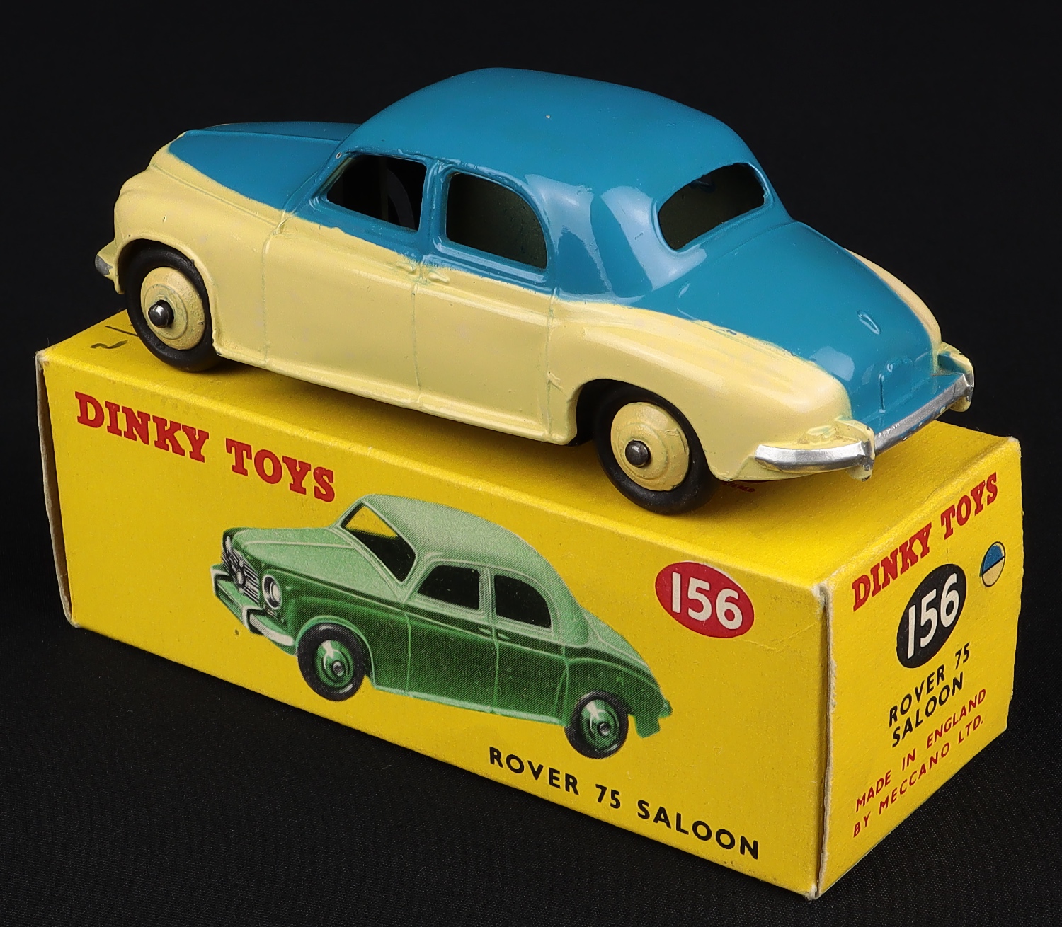 Rover 75 Saloon by Dinky Toys, No. 156 . Mid-blue and cream. Large print baseplate WITHOUT '156'. Very near mint/boxed. Scarce. From The Reference Collection of fine Dinky.