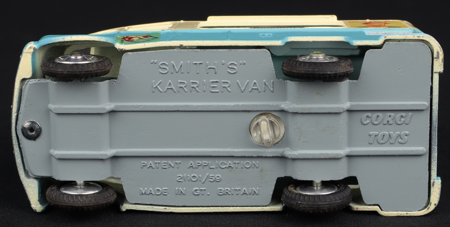 Issued between 1963-66, this popular ice cream van is in very close to mint condition, with virtually complete – complete detailed transfers throughout and spring suspension on all four wheels. Fine original tyres. Ice cream vendor will endlessly serve you with an ice cream cone through the sliding hatch at the front, if you turn the little knob on the baseplate.