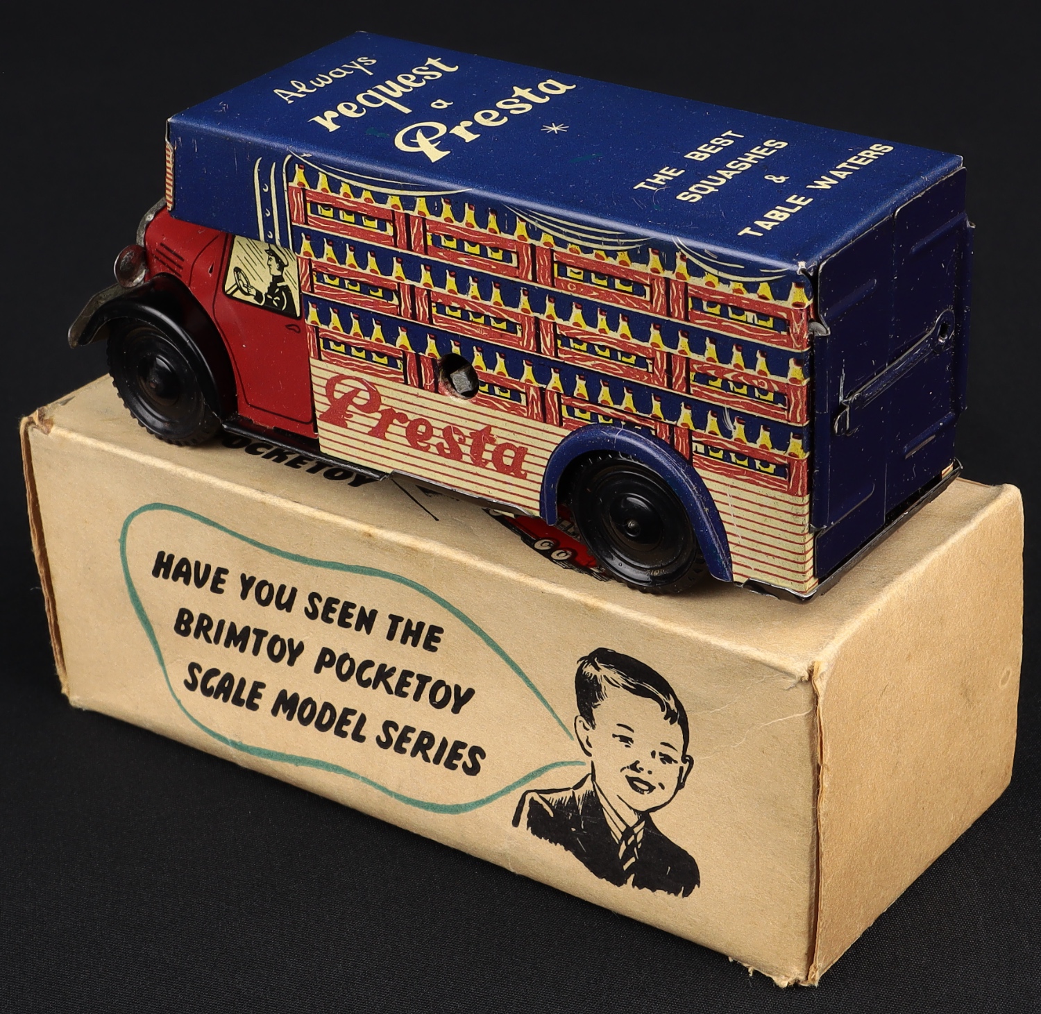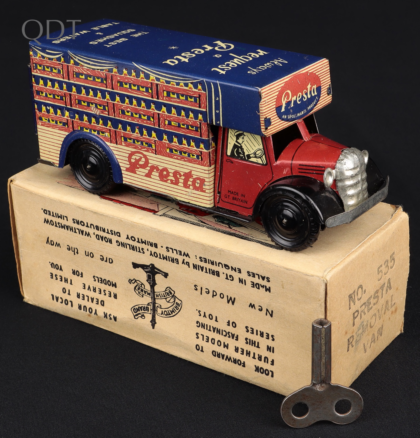 Wells Brimtoy 535 PRESTA Removal Van. Clockwork. Very near mint/boxed. Scarce model from The Denis Tyler Collection. Starting bid £75. Please note that QDT apply 12.5% buyer's commission.