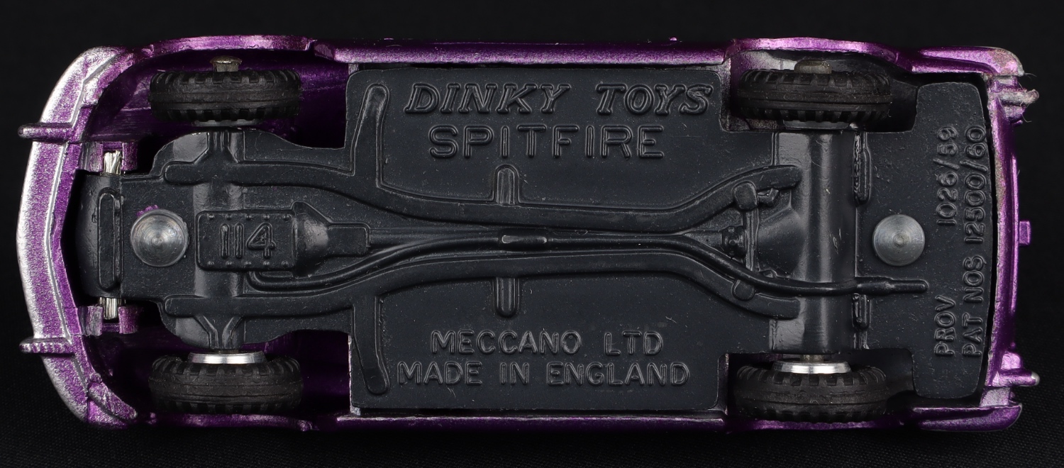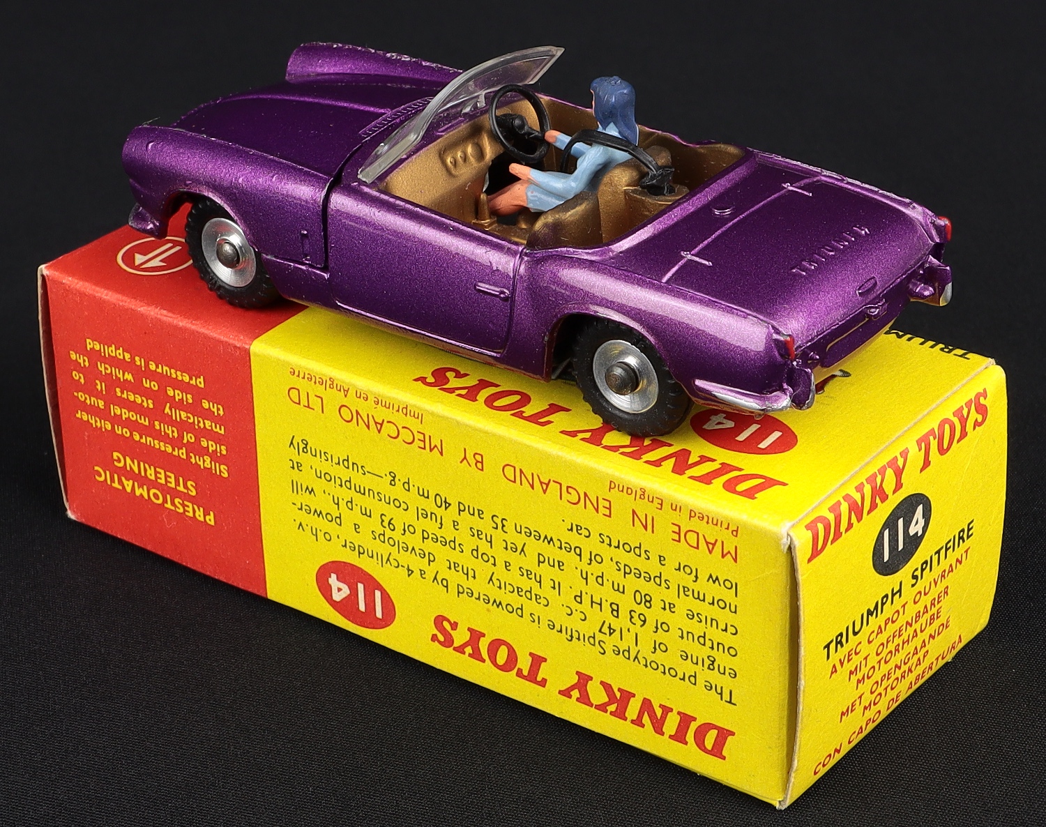 Triumph Spitfire by Dinky Toys, No. 114. Very near mint /boxed. Scarce metallic purple version from The Berlin Collection.