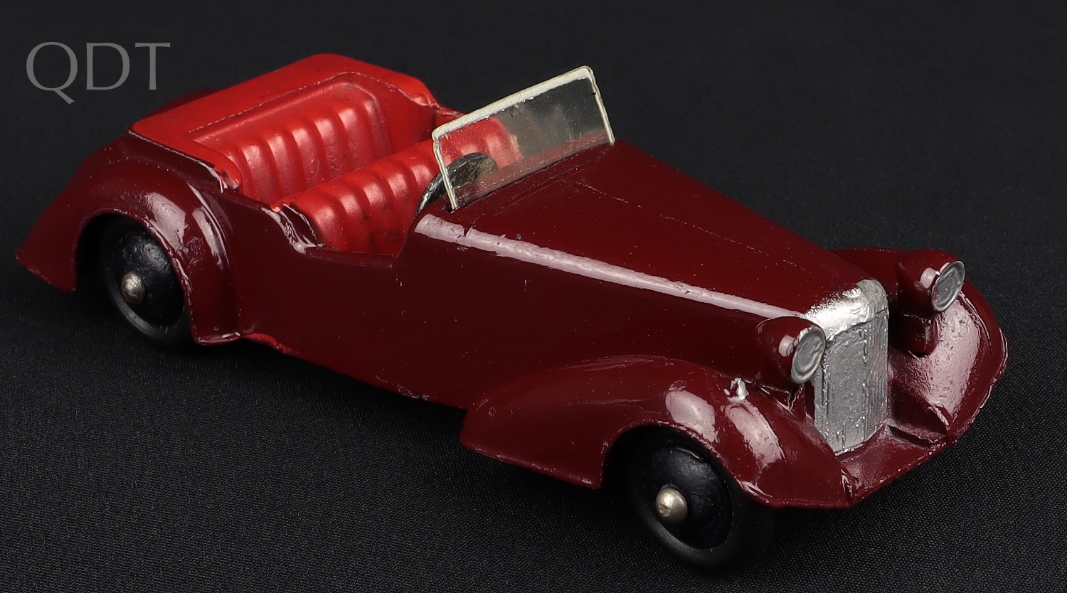 Alvis Sports Tourer by Dinky Toys, No. 38D. Near mint plus/never boxed individually. Maroon, scarce with red seats, smooth wheels, solid steering wheel. From The Denis Tyler Collection. Starting bid £125. Please note that QDT apply 12.5% buyer's commission.