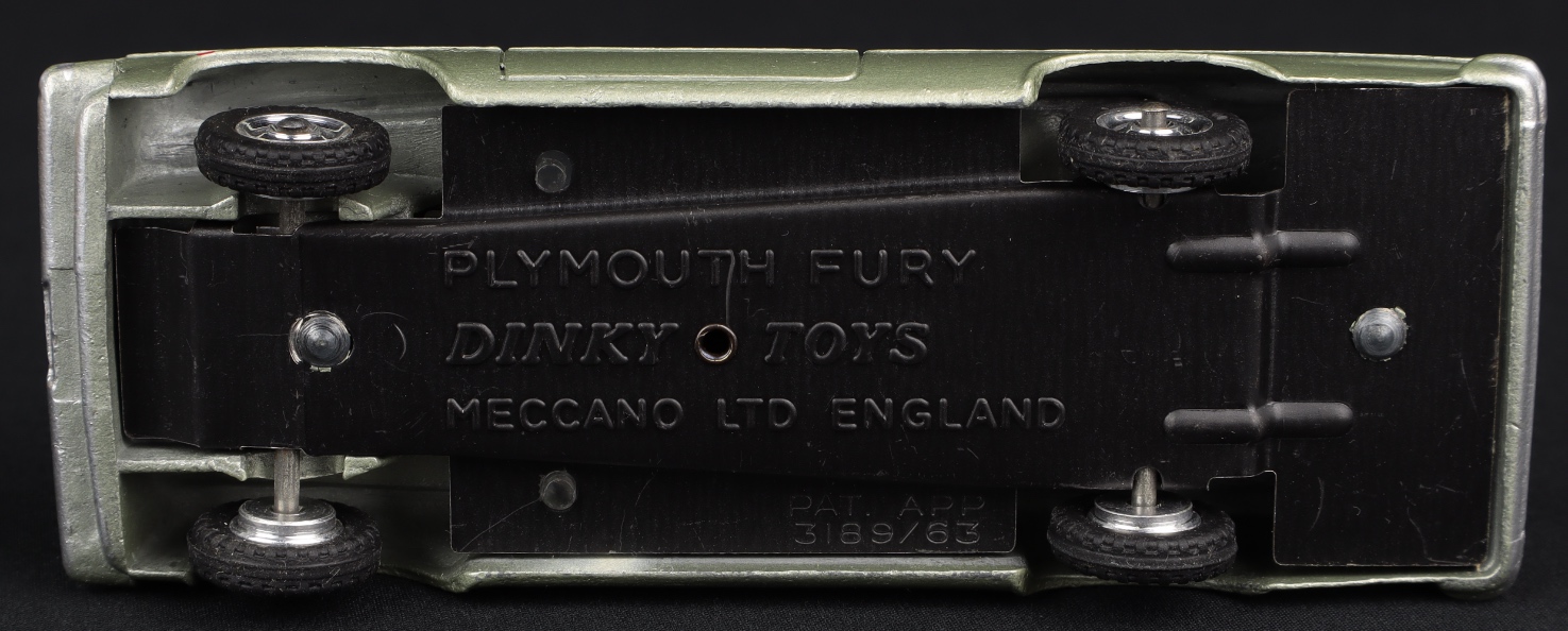 Plymouth Fury Convertible by Dinky Toys, No. 137. Greenish-silver finish with pale grey hard top. Very near mint/boxed, with packing ring. Scarce. From The Reference Collection.