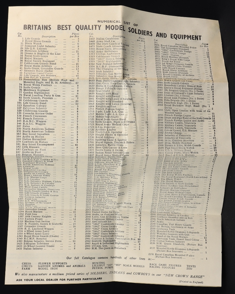 Six Wheel Army Lorry by Britains Models, No. 1335. With driver. Very very near mint/boxed, with promotional leaflet. Another scarce model from The Denis Tyler Collection. Starting bid £75. Please note that QDT apply 12.5% buyer's commission.