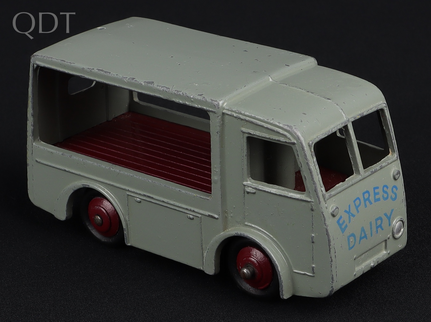 Electric Dairy Van 'Express Dairy' by Dinky Toys, No. 30V. Very rare variant with maroon flat bed & wheels. Excellent/never individually boxed. From The Reference Collection.