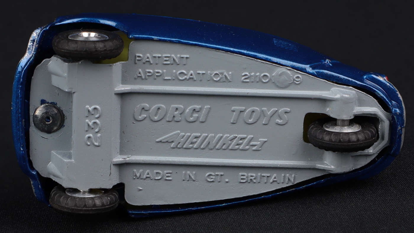 Heinkel Economy Car by Corgi Toys, No. 233. Scarce in metallic blue! Very, very near mint/boxed. From The Rickman Collection.