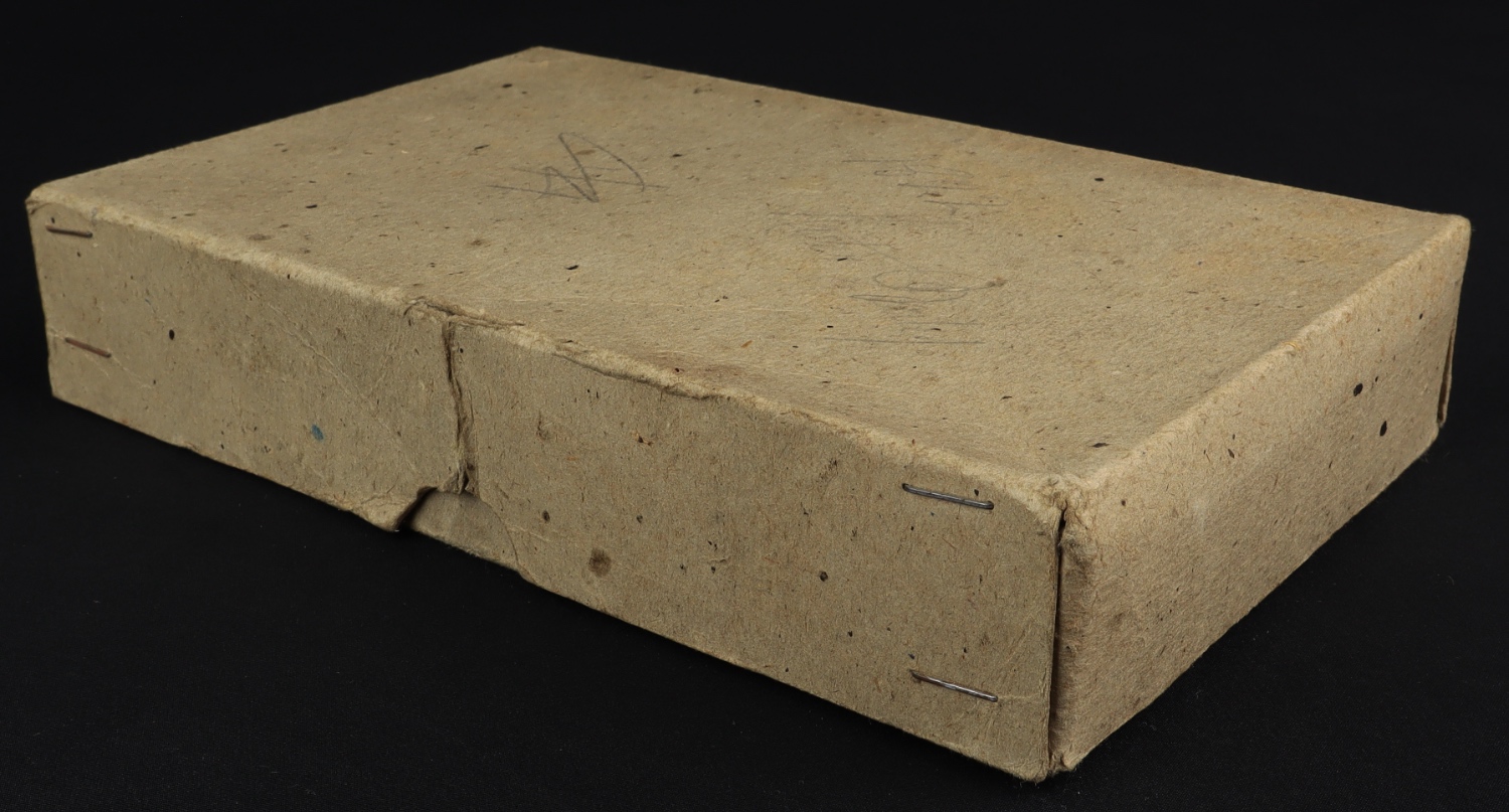 Complete buff Dinky Trade Box comes complete with the card dividers. Virtually complete bright yellow informative label on one short lid end of the lid. Small handling tear to one side of the lid and a little pencilled writing on the top surface.