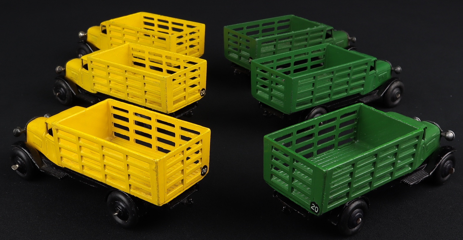 Issued during 1945-1947, this is a pleasing selection of Type 3 Market Gardener’s Lorries in green and yellow.