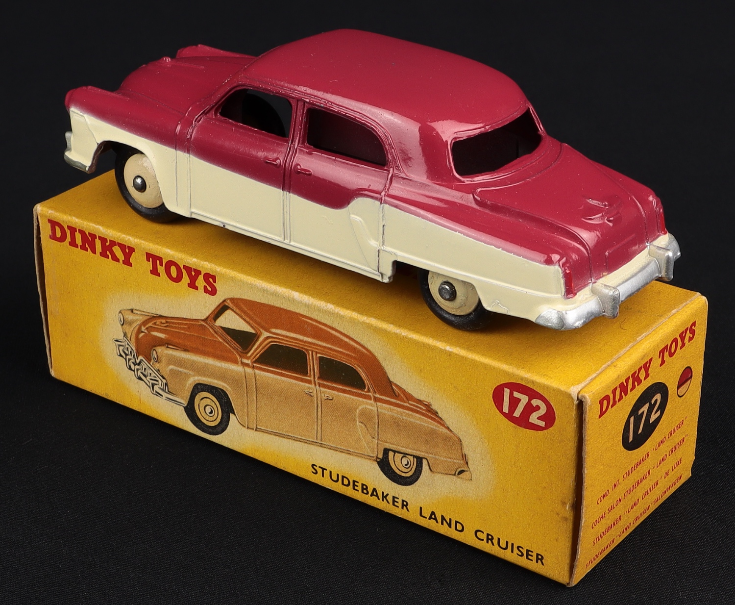 Studebaker Land Cruiser by Dinky Toys, No. 172. Lowline version. Cerise and cream with deep cream wheels. Very near mint/boxed. From The Reference Collection.