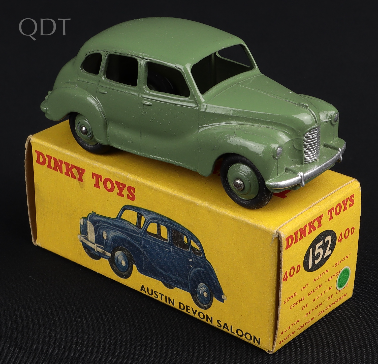 Austin A40 Devon by Dinky Toys, No. 40D 152. Suede green with matching wheels. Very near mint/boxed. Nice box! From The Reference Collection.