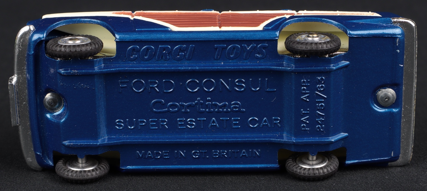 Ford Consul Cortina Super Estate Car by Corgi Toys, No. 491. Very near mint/boxed. Metallic blue issue. From The Eccles Collection.