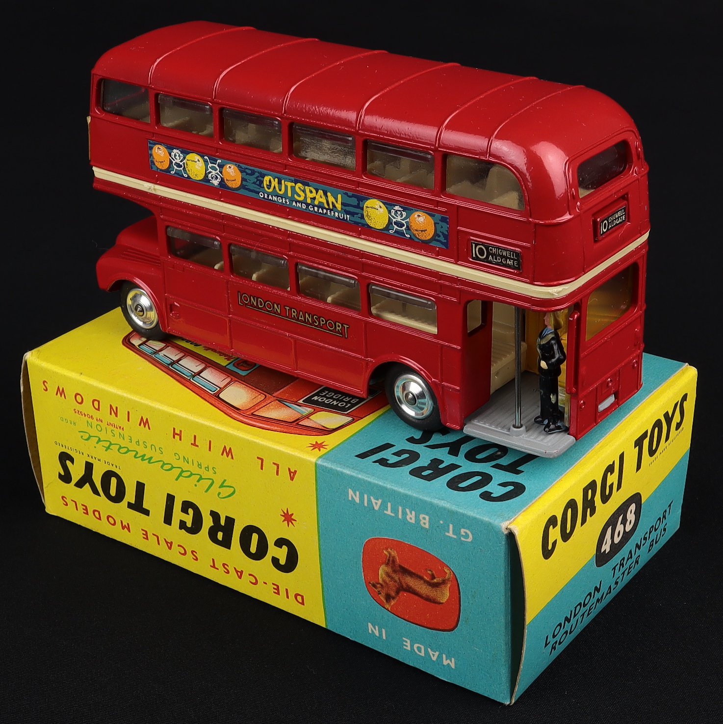 London Transport Routemaster Bus "OUTSPAN" by Corgi Toys, No. 468. Very near mint/boxed. Early issue with spun wheels. From The Eccles Collection.